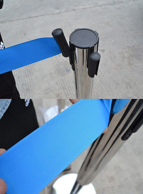 - Cuộn dây rút kéo căng có chiều dài 5m được tích hợp ngay trên đỉnh thân trụ với nhiều màu sắc đa dang cho bạn dễ dàng lựa chọn như màu xanh dương, xanh lá, màu đỏ, đen, vàng. Tùy theo nhu cầu có thể in logo, thương hiệu hay biểu ngữ lên dây trụ chắn nhằm nâng cao hiệu quả truyền tải thông tin, quảng bá…Cuộn dây trụ chắn có tích hợp lò xo mang đến khả năng tự thu hồi sau khi kéo thả.